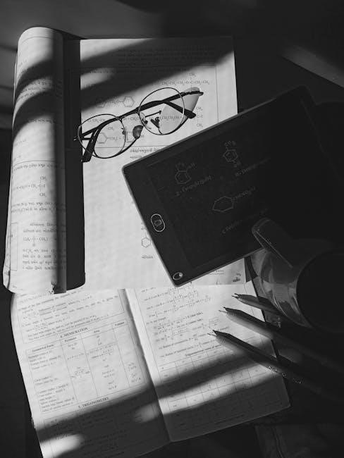 Spectroscopic techniques—UV-Vis, IR, and NMR—reveal molecular structure and properties․ Mastering interpretation of spectra is essential for identifying functional groups and bonding arrangements․